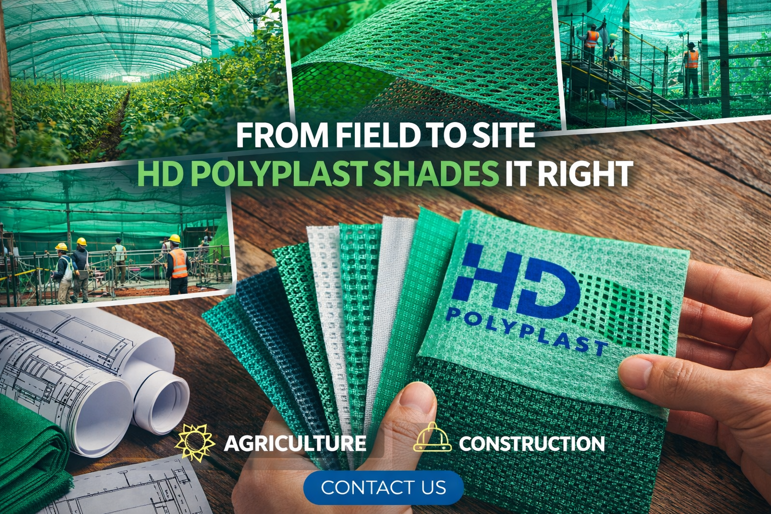 HD Polyplast is a trusted manufacturer and supplier of high-quality netting and covering solutions designed for agriculture, horticulture, and infrastructure applications. We provide durable and efficient solutions for Agro Green Houses, Shade Houses, Floriculture, Terrace Gardens, Boundary Fencing, Ornamental Plants, Building Scaffolding, and Car Parking.