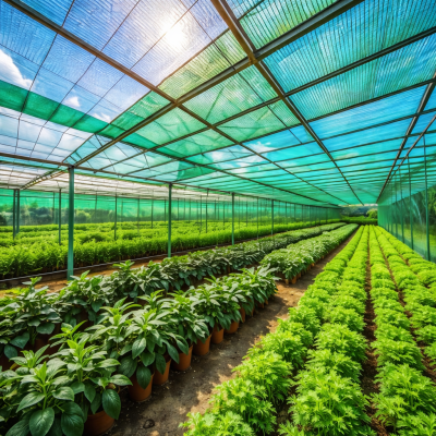 Durable green shade net providing optimal sunlight control, crop protection, and improved plant growth.